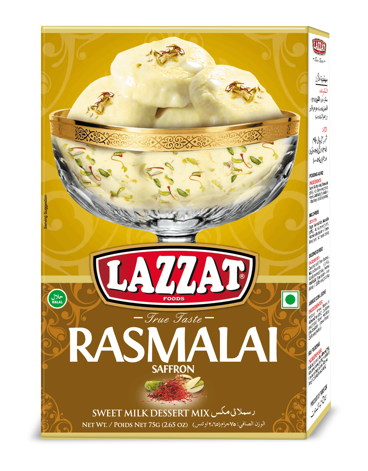 The traditional taste of ras malai locked into the Lazzat Rasmalai pack to maintain freshness. Unleash the heavenly taste with minimal preparation. With the royal touch of saffron.